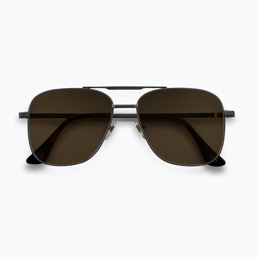 Ferro is born of that era. Its metal finish recalls the steel of the bikes, the brown tortoiseshell acetate tips recall the leather saddle, and the rainbow flag detail was found on most bicycles of the time.