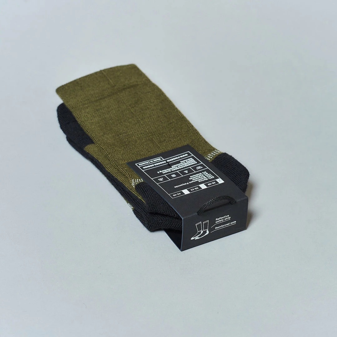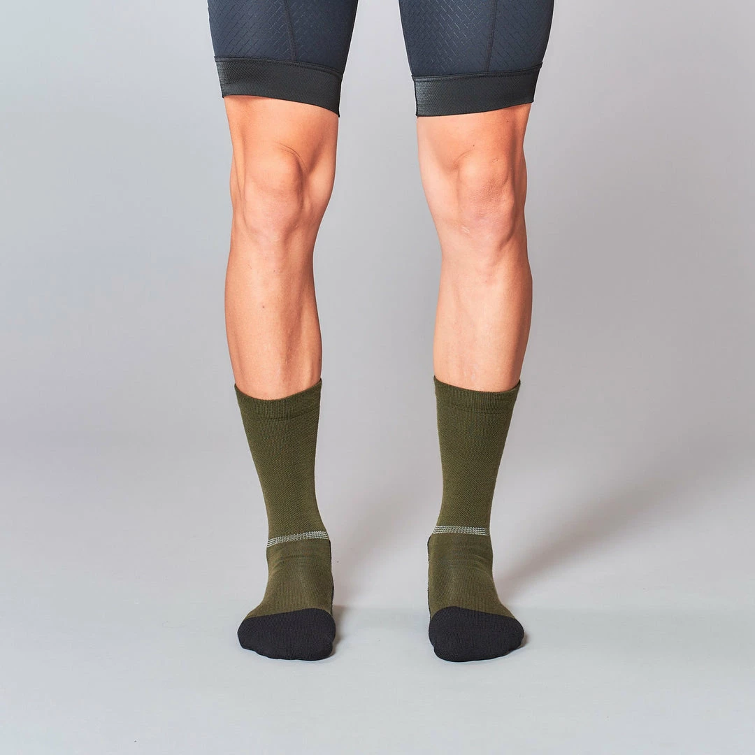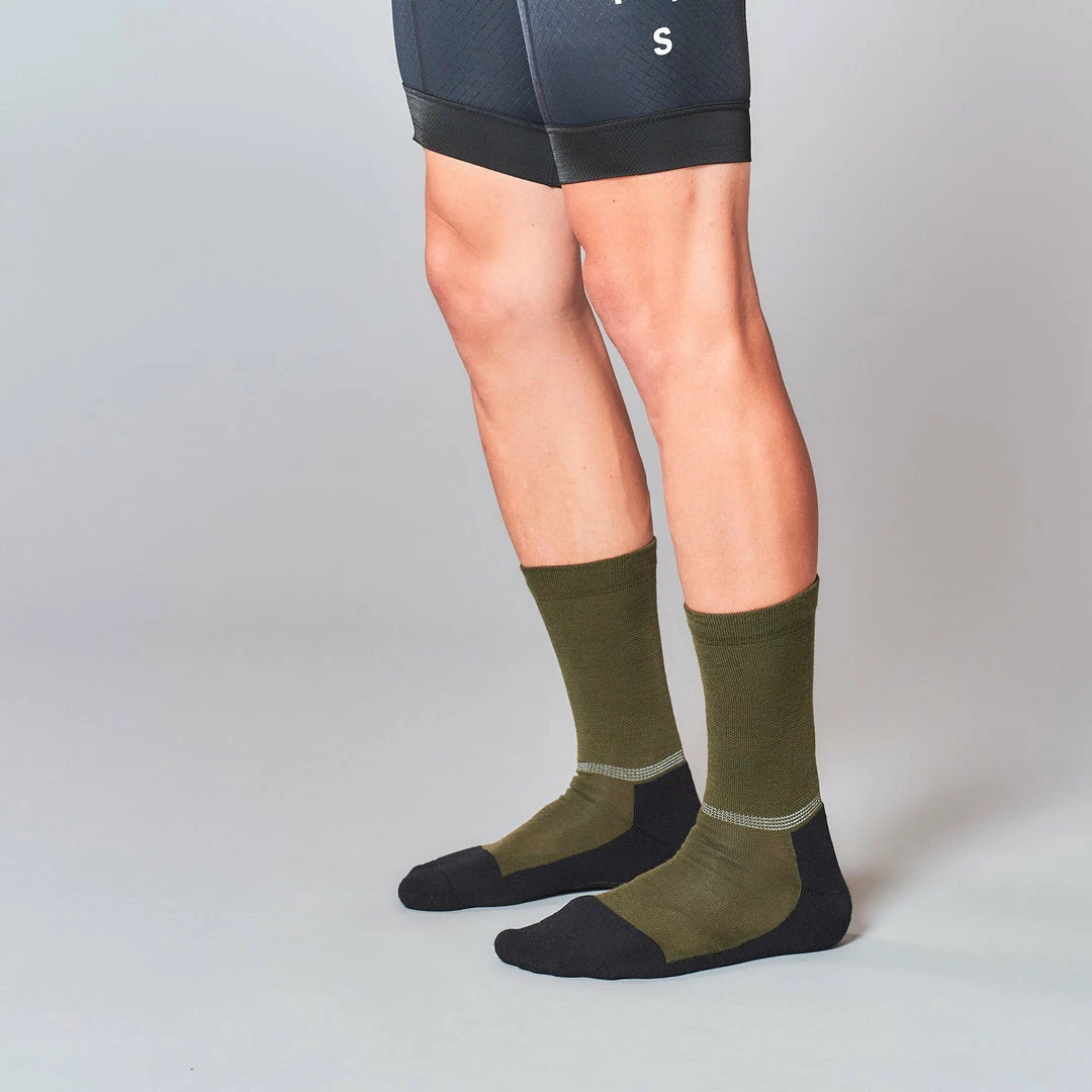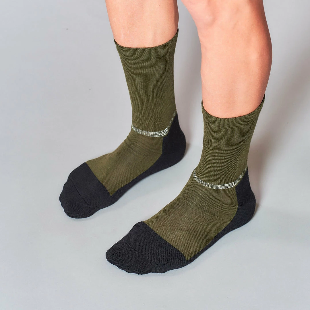 Fingerscrossed MERINO* WINTER SOCKS are ideal for late autumn, early winter & early spring. A reflective safety strip specially designed for the area between your leg warmers and your shoe increases your safety in the dark & during the months when it quickly gets dark outside. An integrated toe cap surrounds your toes up to the verse in the form of an extra reinforcement of the material.