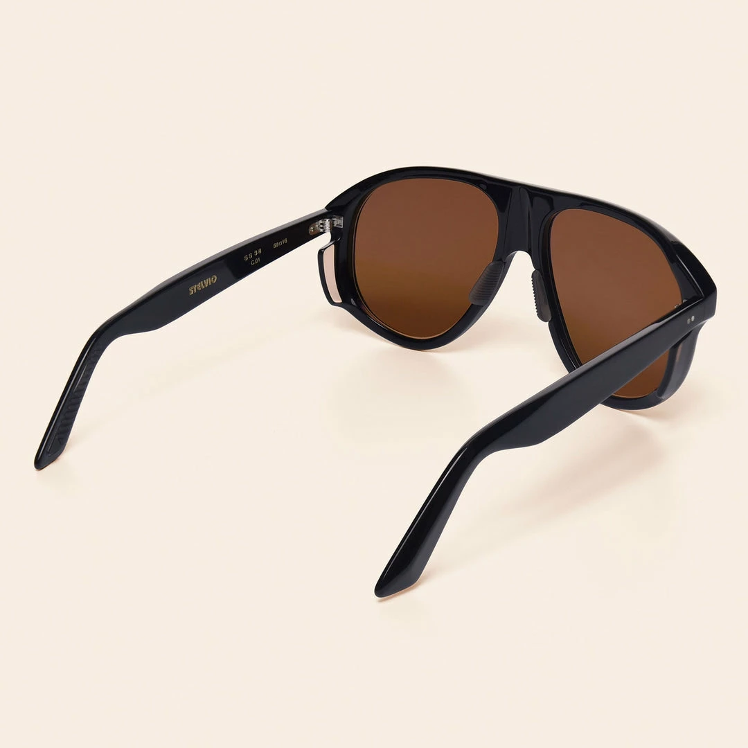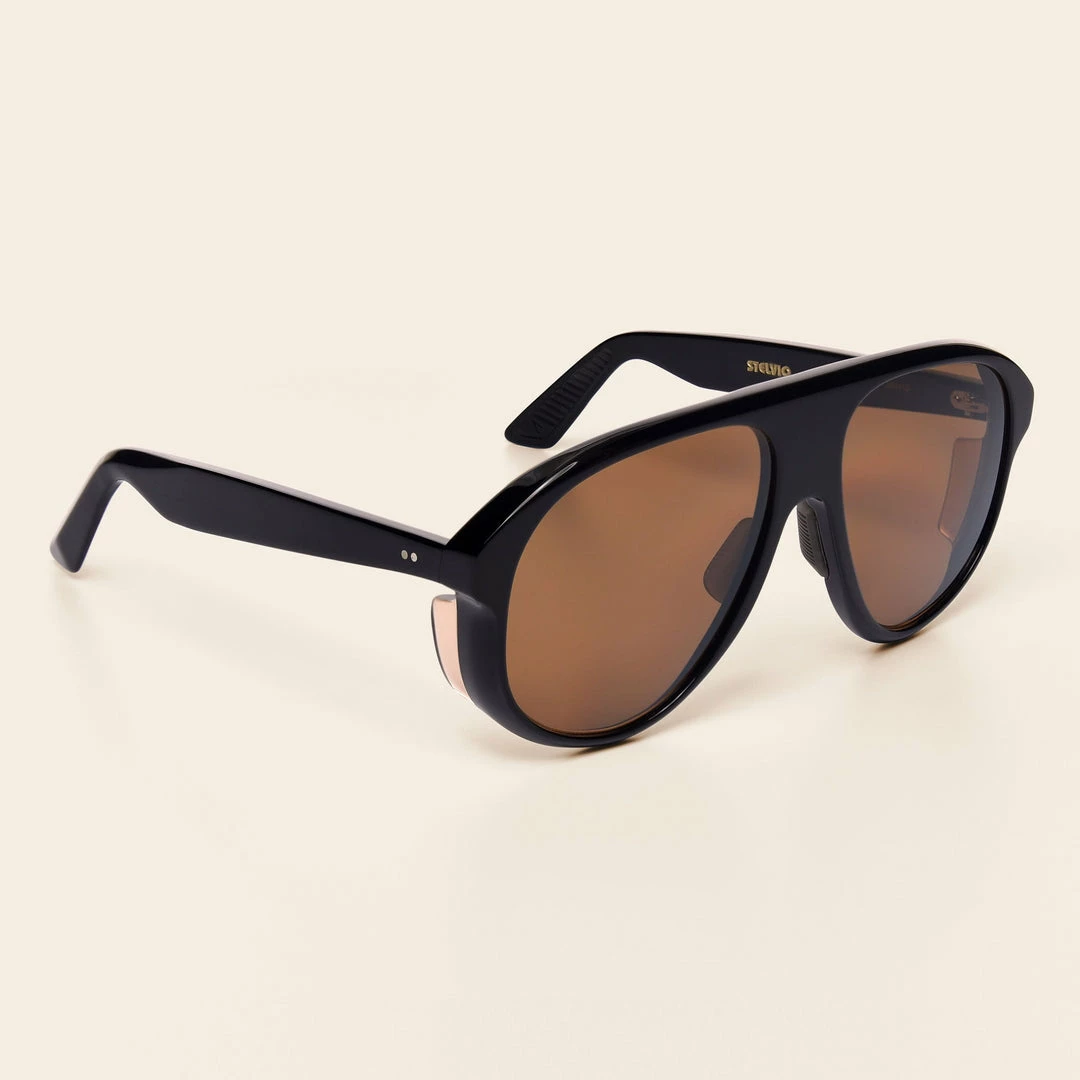 Named after the SS38 Passo dello Stelvio, one of cyclingโs most iconic stretches of road, with its 48 switchbacks climbing to 2758m high in the Italian alps. The Stelvio takes its style cues from the bold, tear drop shaped aviators favoured by motor racing drivers of the 70โs and 80โs.The large lens and raised brow line give greater visual scope and increased protection.