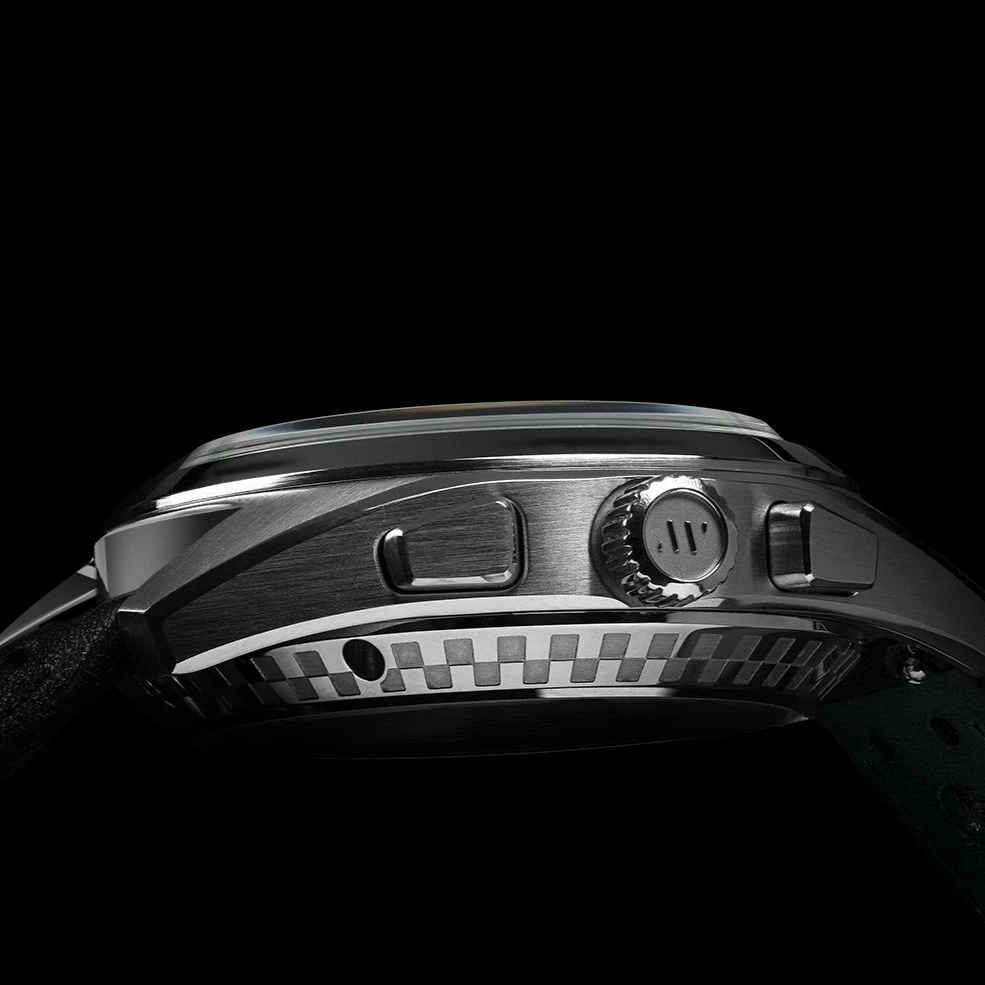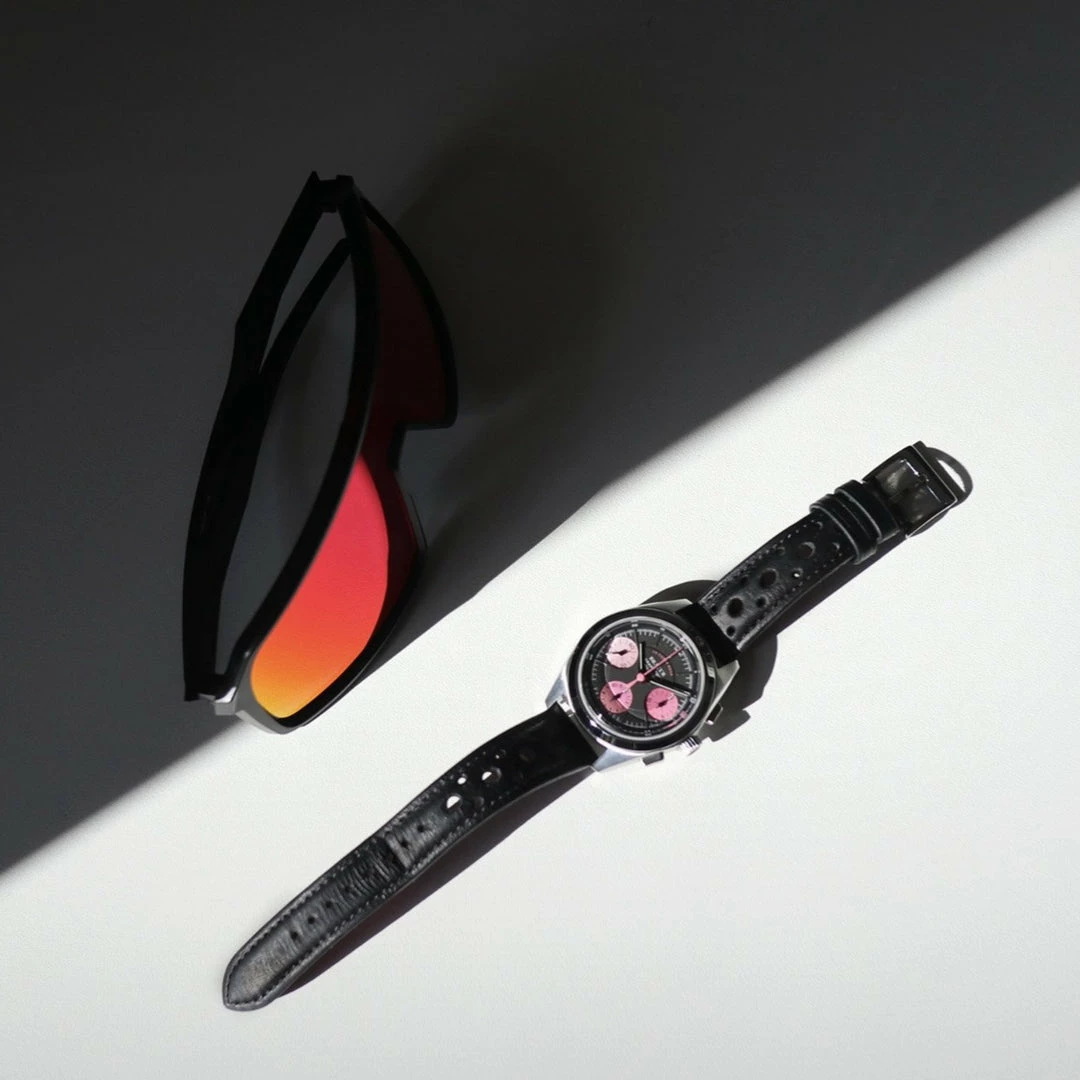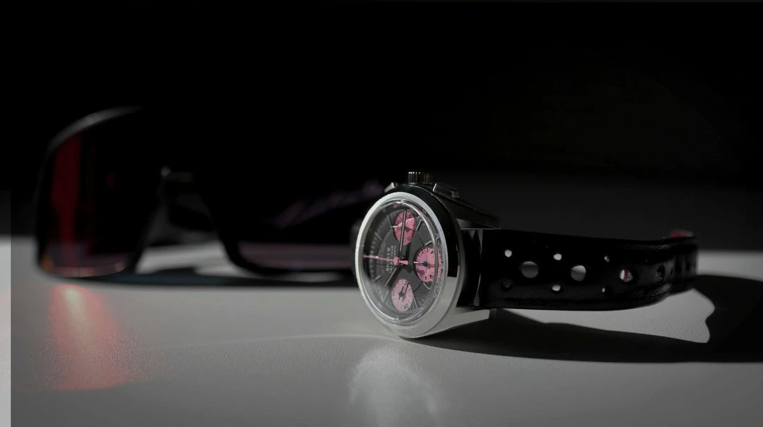 The perforated leather strap gives the watch a sporty but elegant look, adding a vintage vibe.