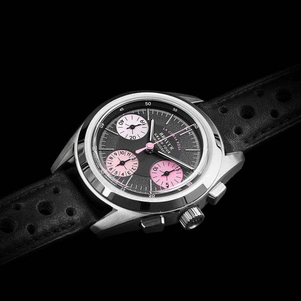 The Grand Tour – La Corsa Rosa model has a case diameter of 38,2 mm, which is a beautiful and versatile size. The case is made from 316L stainless steel and combines brushed and polished surfaces, creating a balanced and elegant expression.