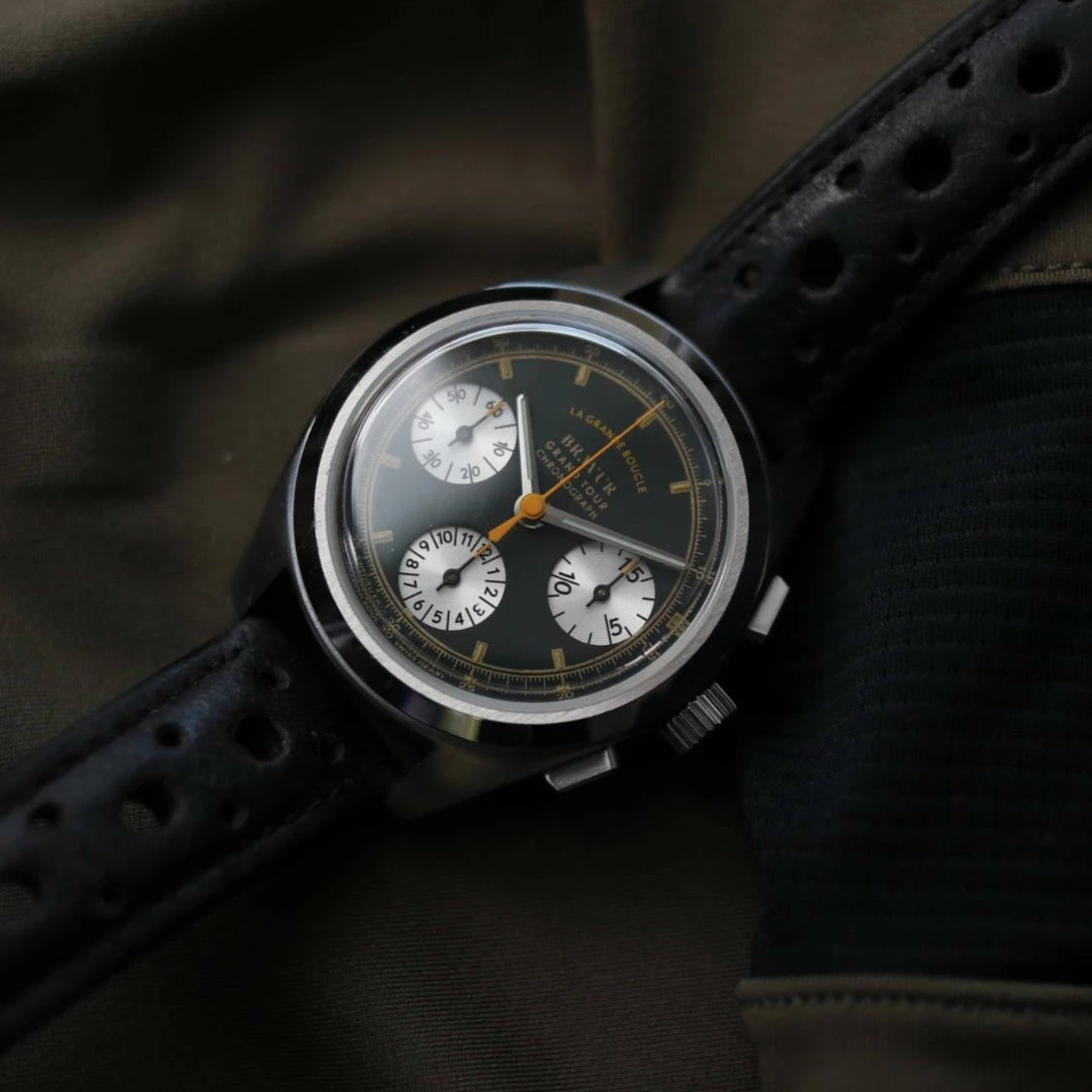 The Grand Tour – La Grande Boucle model has a case diameter of 38,2 mm, which is a beautiful and versatile size. The case is made from 316L stainless steel and combines brushed and polished surfaces, creating a balanced and elegant expression.