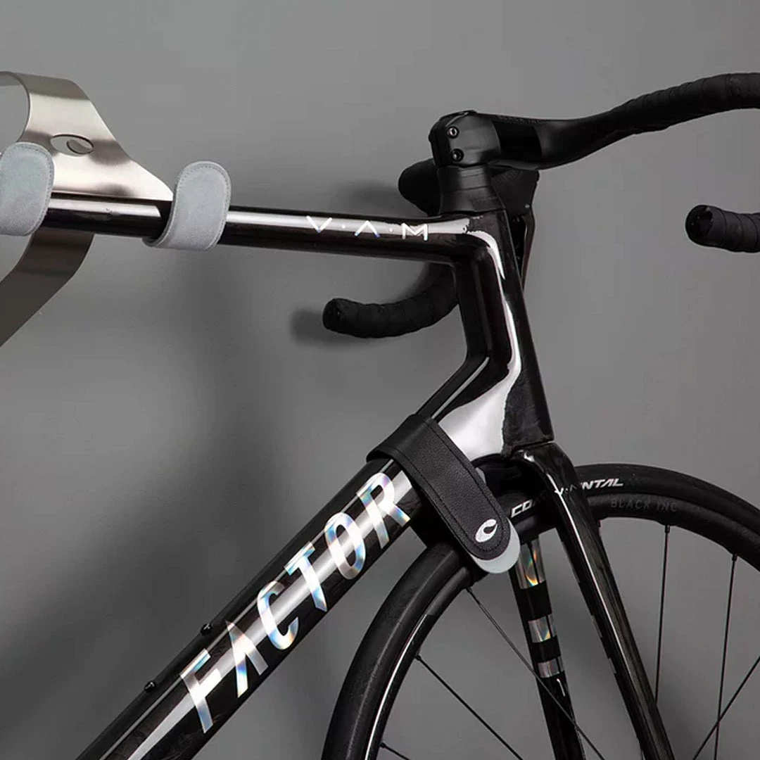 Does your front wheel have a mind of its own? Are you constantly knocking into that wayward front tyre? It’s time to nobble that wobble with our stylish wheel strap. Available in standard and deep rim versions, the Nobble Wobble from Cactus Tongue holds your front wheel and fork in line when your bike is not being used. Handmade in the UK, our Nobble Wobble wheel strap is made from a classy black leather with contrasting brushed marine grey leather trim.