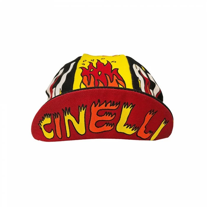 New cap design by New Jersey Artist Ana Benaroya for theΒ Cinelli Art Program.Β The Cinelli Art Program is a new product series that features limited edition design collaborations by our artist friends. The newest ‘Fire’ design features Ana’s signature style and flavor. The cycling cap is a perfect accessory on or off the bike. An extra layer of protection under your helmet on cooler days, it also keeps the sweat out of your eyes on intense rides.Β .