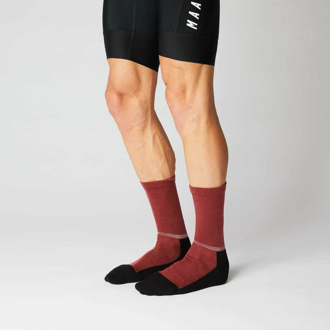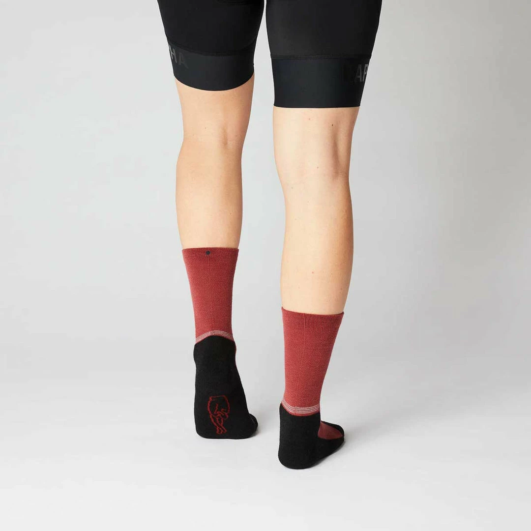 Fingerscrossed MERINO* WINTER SOCKS are ideal for late autumn, early winter & early spring. A reflective safety strip specially designed for the area between your leg warmers and your shoe increases your safety in the dark & during the months when it quickly gets dark outside. An integrated toe cap surrounds your toes up to the verse in the form of an extra reinforcement of the material.