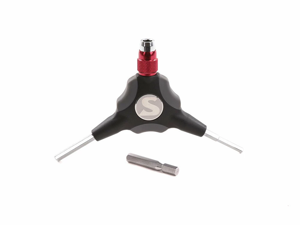 Like everything SILCA do, the Ypsilon was designed by a team of engineers and mechanics who obsess over every fine detail. Unlike traditional Y-wrench designs, Ypsilon is customizable and adaptable to the mechanicโs preferences. SILCA were able to do this by using a ยผโ bit collet with magnetic attachment in place of one of the 6mm hex wrench. This departure from the traditional Y-wrench design was inspired by the versatility of the T-Ratchet + Ti Torqueย kit,ย and means that Ypsilon can easily transform into any tool you need simply by swapping out the bit. The other two ends of the tool are 4mm and 5mm hex keys.