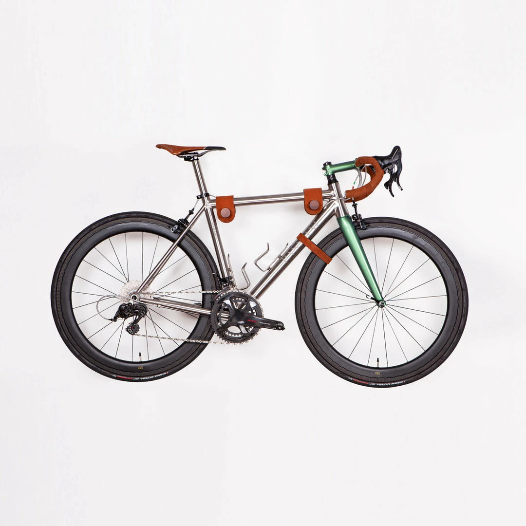 The minimalist indoor storage solution reinterpreted in Vadolibero style with unique leather details: it’s a solid hardwood twin rack that allows you to hang all bikes straight on the wall. And fits with any décor.