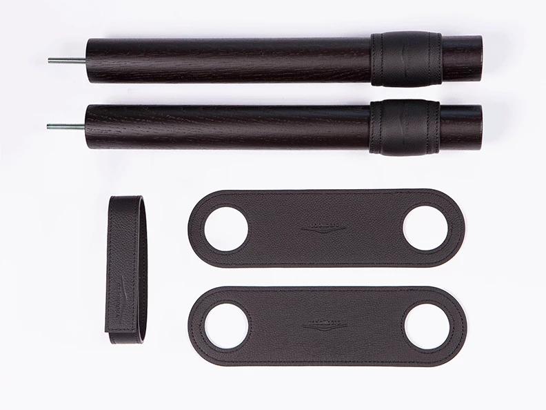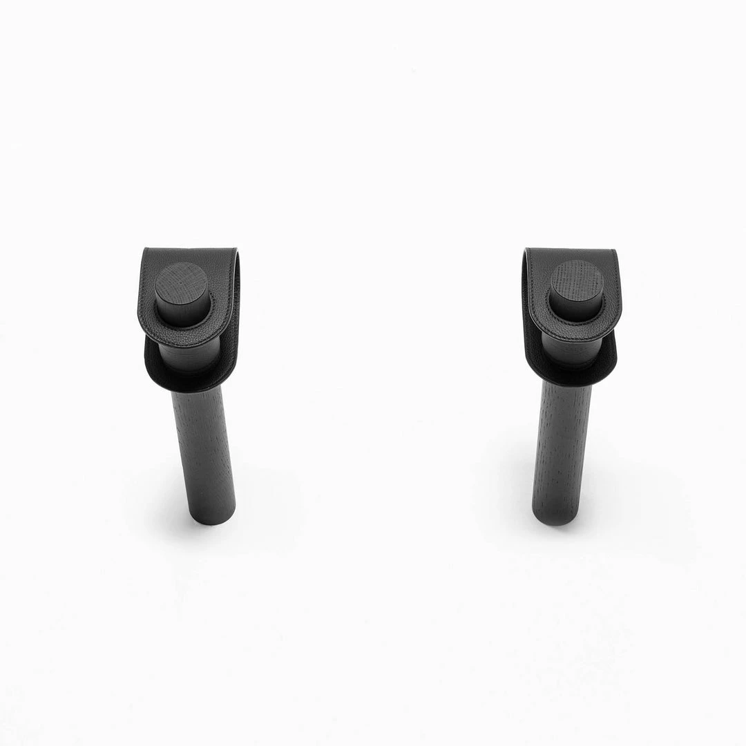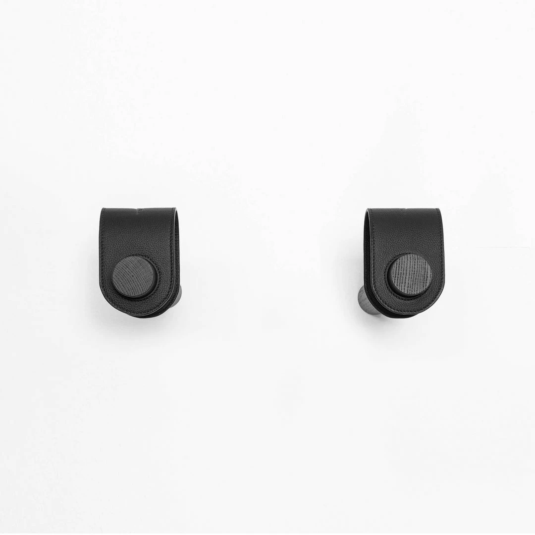 DUO hooks are wrapped with a leather band that cushions the top tube, preventing scratches. The leather frame straps can be used with most of the top tube sizes (up to 5,5 cm diameter). The leather stabiliser keeps the front wheel straight.