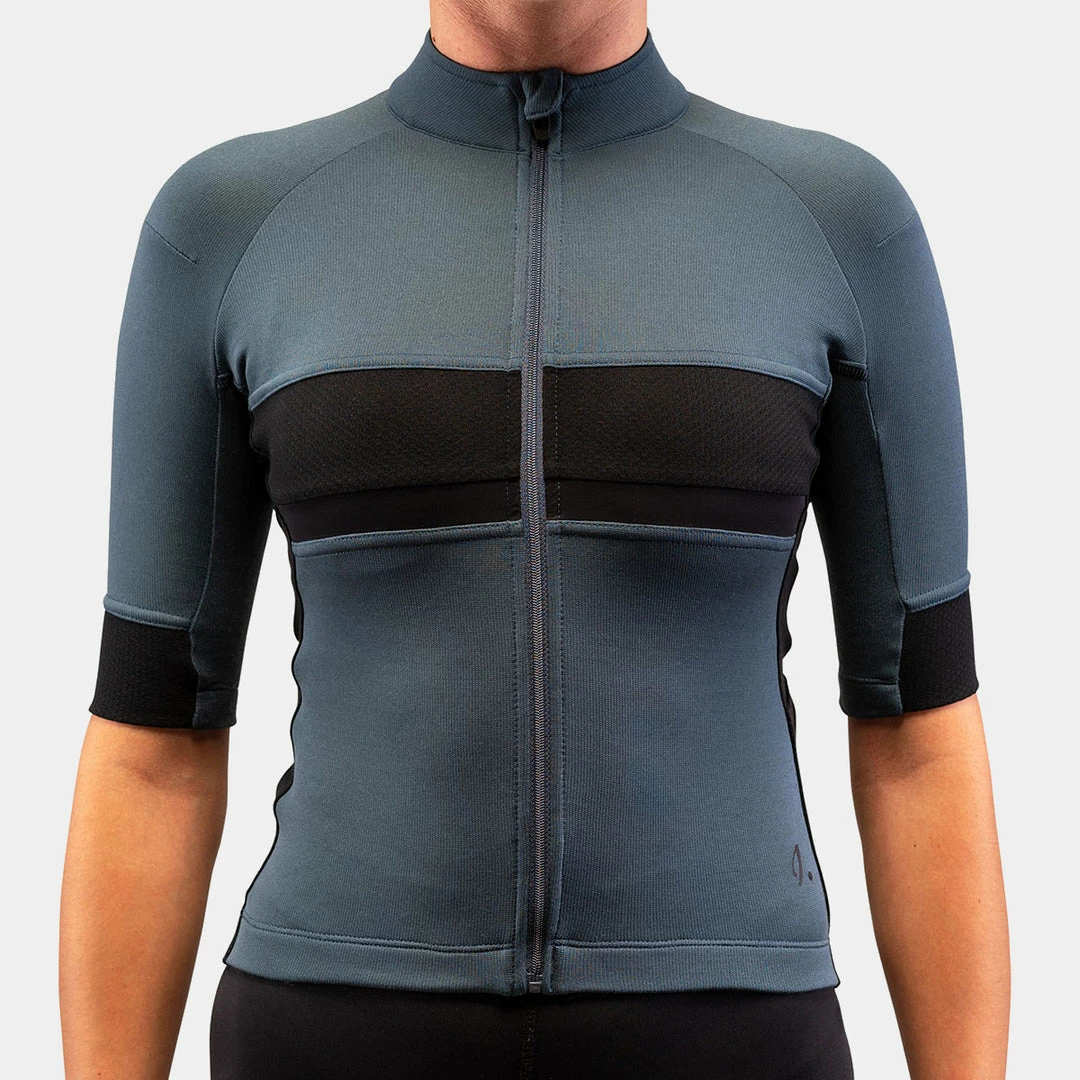 The unique combination of fabrics from Merino wool to recycled Polyestere to the lightweight breathable membrane material work to create an exceptional jersey that is ready for anything.