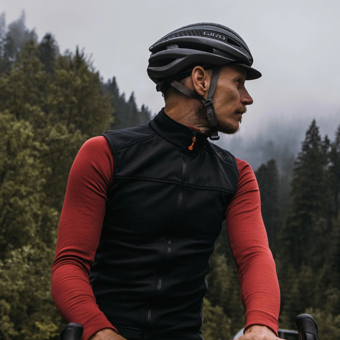 Matching our Merino Membrane Jacket perfectly, the Merino Membrane Softshell Vest is the type of vest you wear when you know the entire ride will be cold and wet. The Italian-made material has a Merino wool interior while the exterior is a durable and highly breathable wind and water-resistant laminated membrane. The drop-down flap can be extended to prevent mucky road spray from penetrating to your backside.