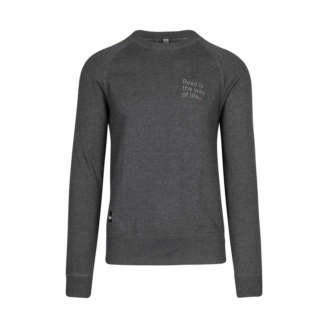 The first thing youβll want to put on after a cold day in the saddle, this is a sweatshirt that can work equally well as an aprΓ¨s comfort top or as an all-day fashion statement. Itβs an everyday classic that works well on and off the bike. The blend of recycled pre-consumer cotton organically grown with recycled post-consumer polyester which has received the GRS certificate (Global Recycled Standard) means that it slots nicely into our emphasis on reducing our impact on the environment and avoiding over consumption. The brushed material has a soft and comforting feel that will make this the ultimate essential for a rainy afternoon or night roaming the town. On the front youβll find a screen printed βRoad is the Way of Lifeβ motto while the Isadore logo has been sewn onto a woven label. Produced by a member of the Fair Wear foundation manufacturer, this sweatshirt has a unisex fit though women may prefer to size down unless they want to sport an oversized look.
