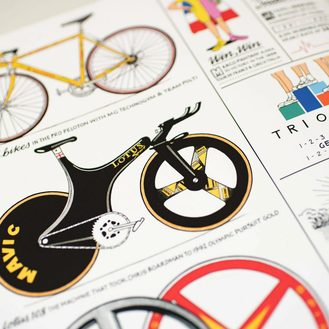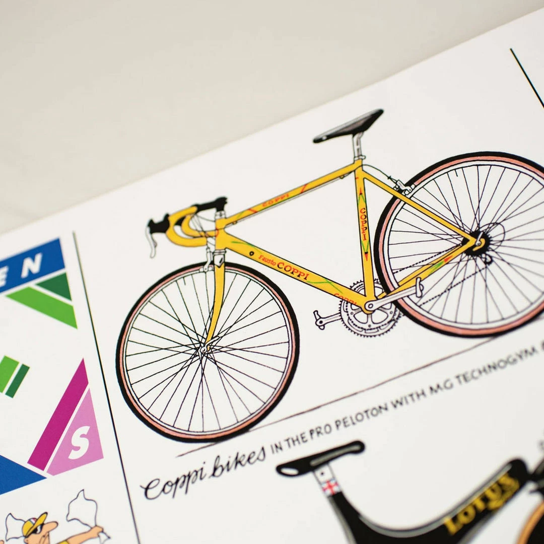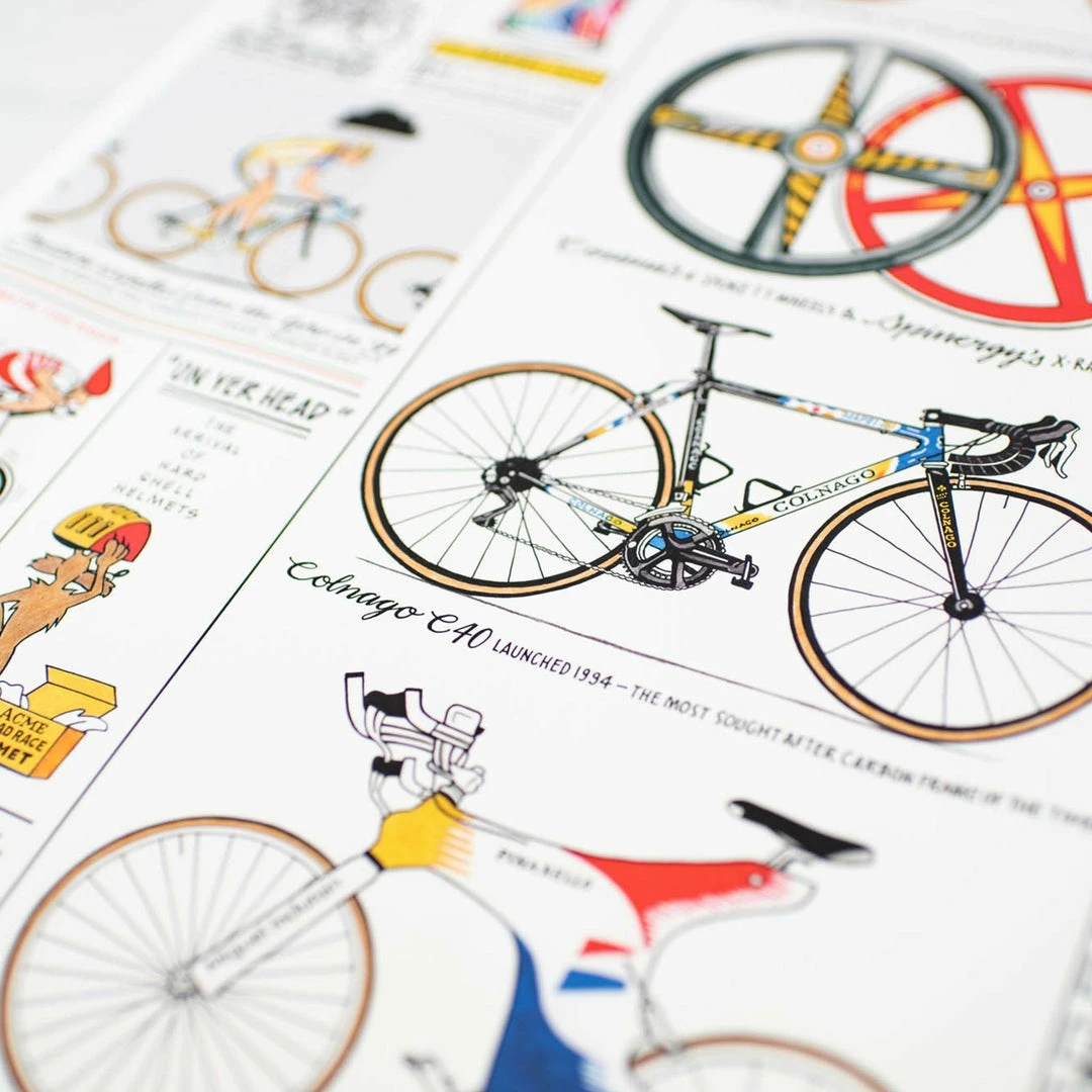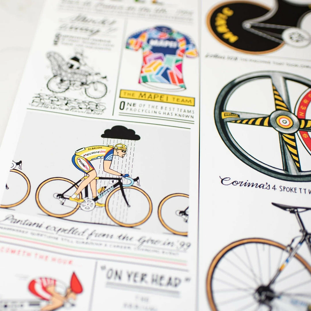 A visual celebration of one of the most exciting, interesting and colourful decades in cycling. Hand-illustrated by UK artist, Martin Procter in his signature style and immaculate detail.