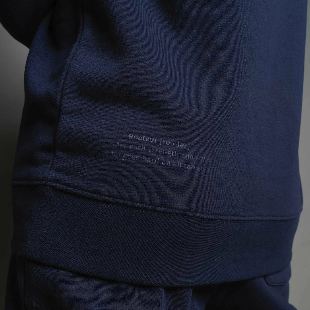 Our organic off-the bike staple, revised and renewed for 2021 – a classic crewneck sweatshirt in improved cut, featuring a tonal screenprint on the chest and sleeve. Organic brushed back cotton jersey material with subtle branding for casual wear.