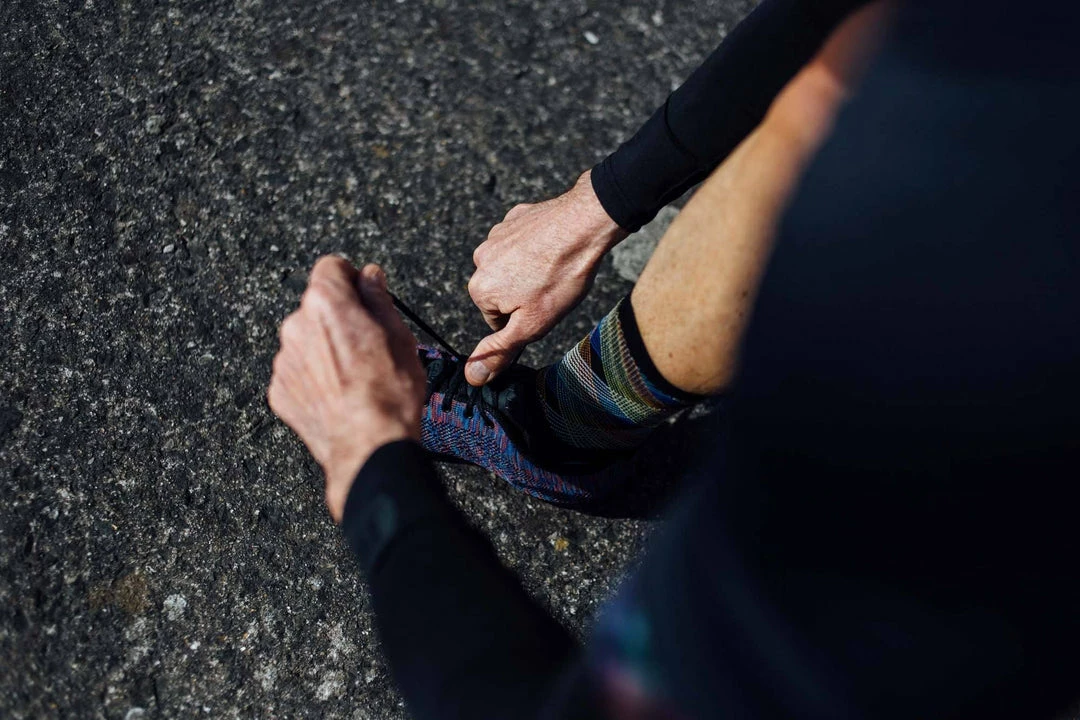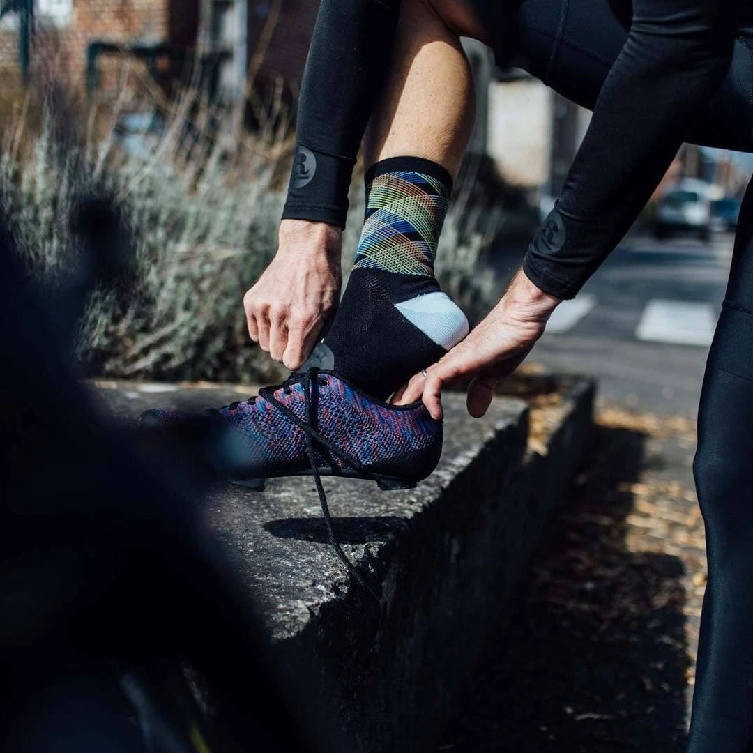 Our striking cross-hatch pattern inspired by the colours of the peloton, now in a seasonal Merino wool version.