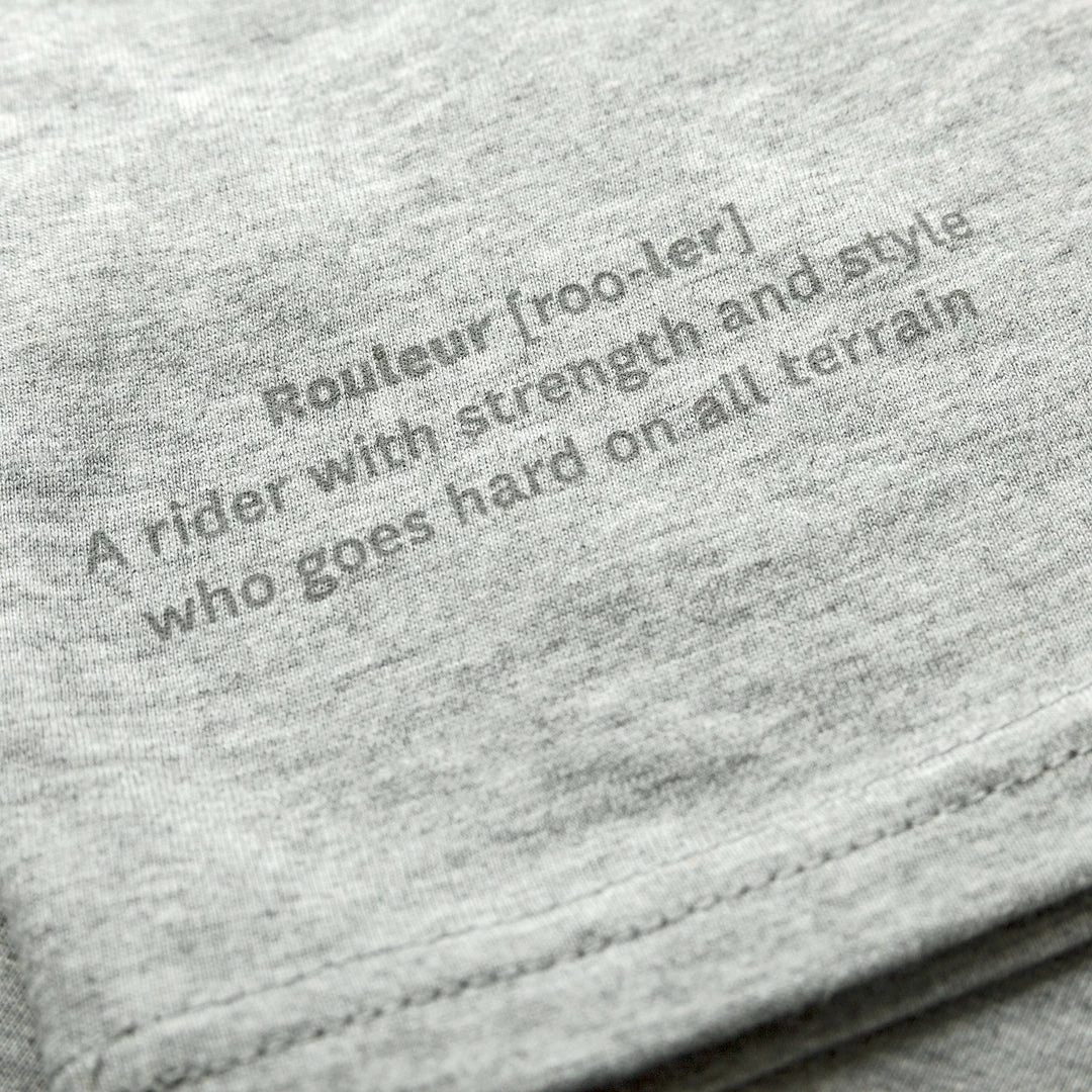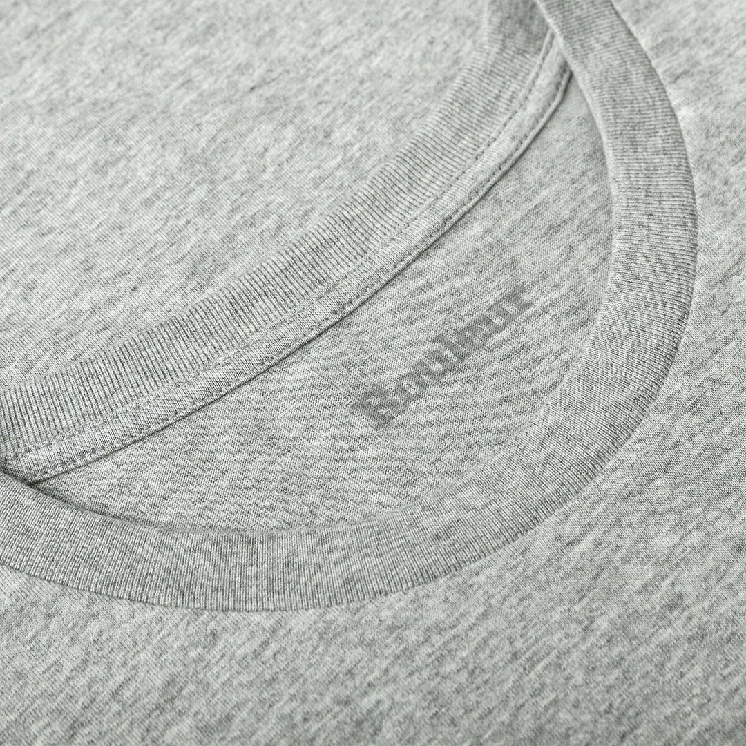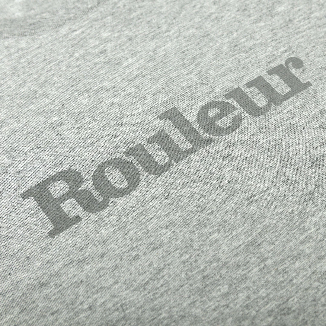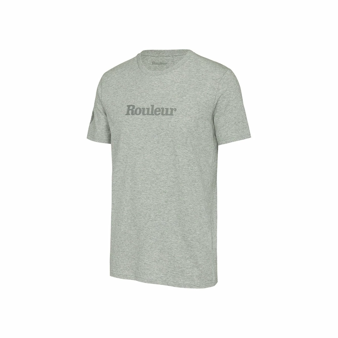 The premium Rouleur t-shirt in grey with a subtle tonal charcoal logo. The iconic wordmark is screen printed onto a soft 100% organic cotton t-shirt.