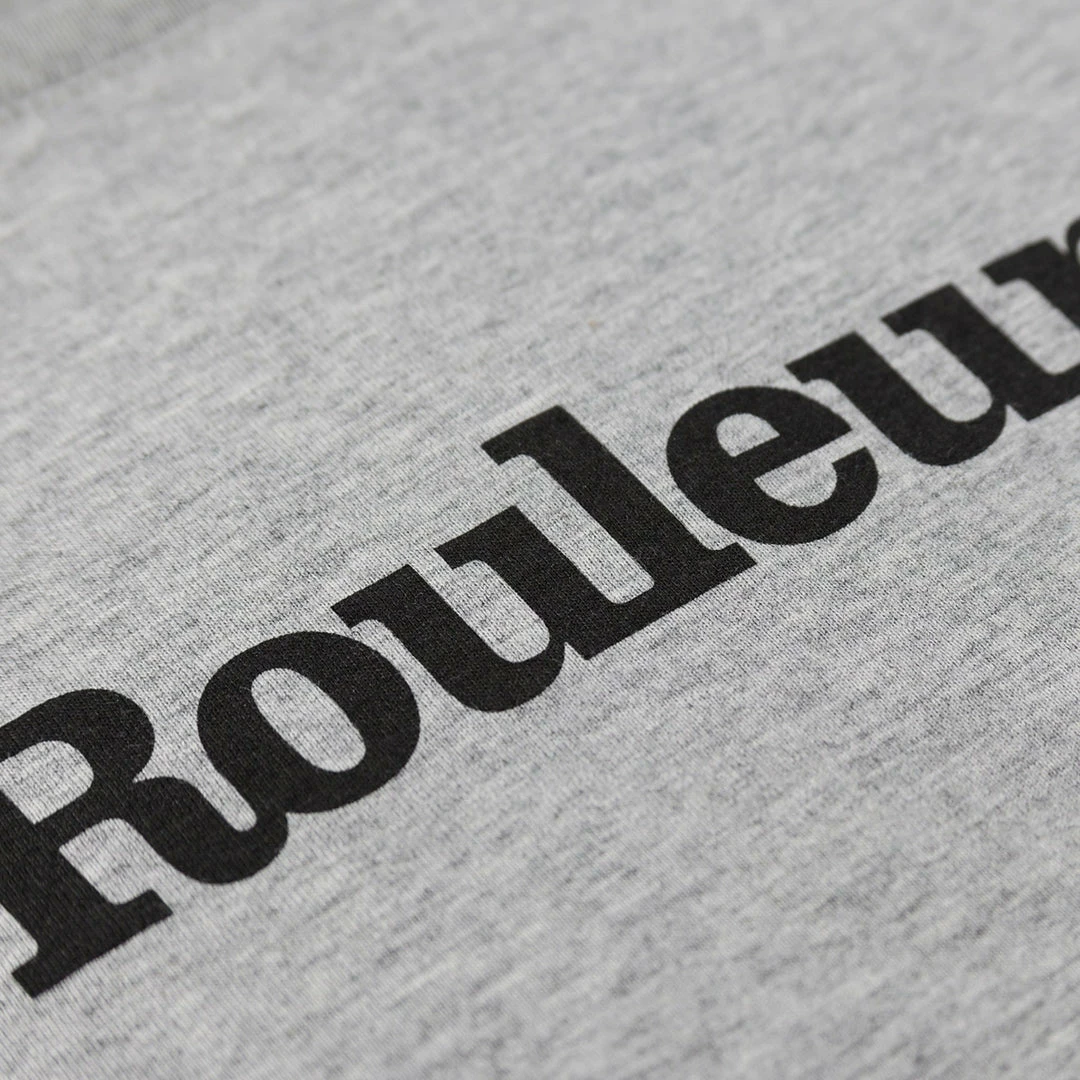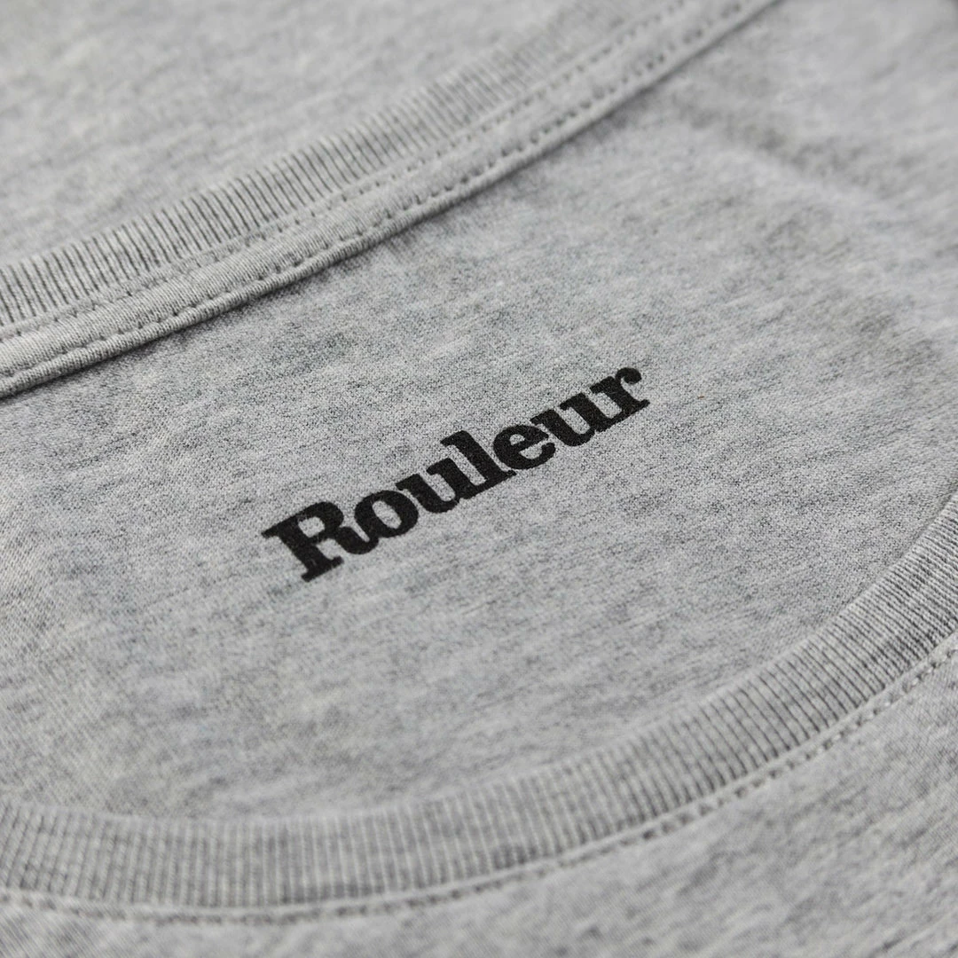 The premium Rouleur logo t-shirt with a female-specific cut. In grey with a charcoal logo. The iconic wordmark is screen printed onto a soft 100% organic cotton t-shirt.