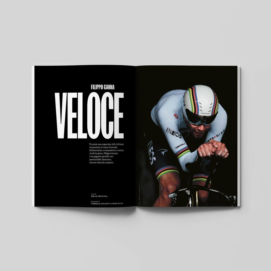 La vita in corsia di sorpasso, abbiamo parlato di velocità e ciclismo con Mark Cavendish, Valtteri Bottas e Cal Crutchlow. L’intervista a Filippo Ganna; la sfida al muro dei 60 in un’ora, è possible? La gioia del ciclismo lento. Cosa succede nella testa di un corridore allo sprint finale? Lo abbiamo chiesto a tre atlete professioniste; la storia del Rubaun Jaune; la sfida di Rapha per diventare sostenibile. Di questo e di altro, con splendide fotografie e illustrazioni, si parla nel numero.