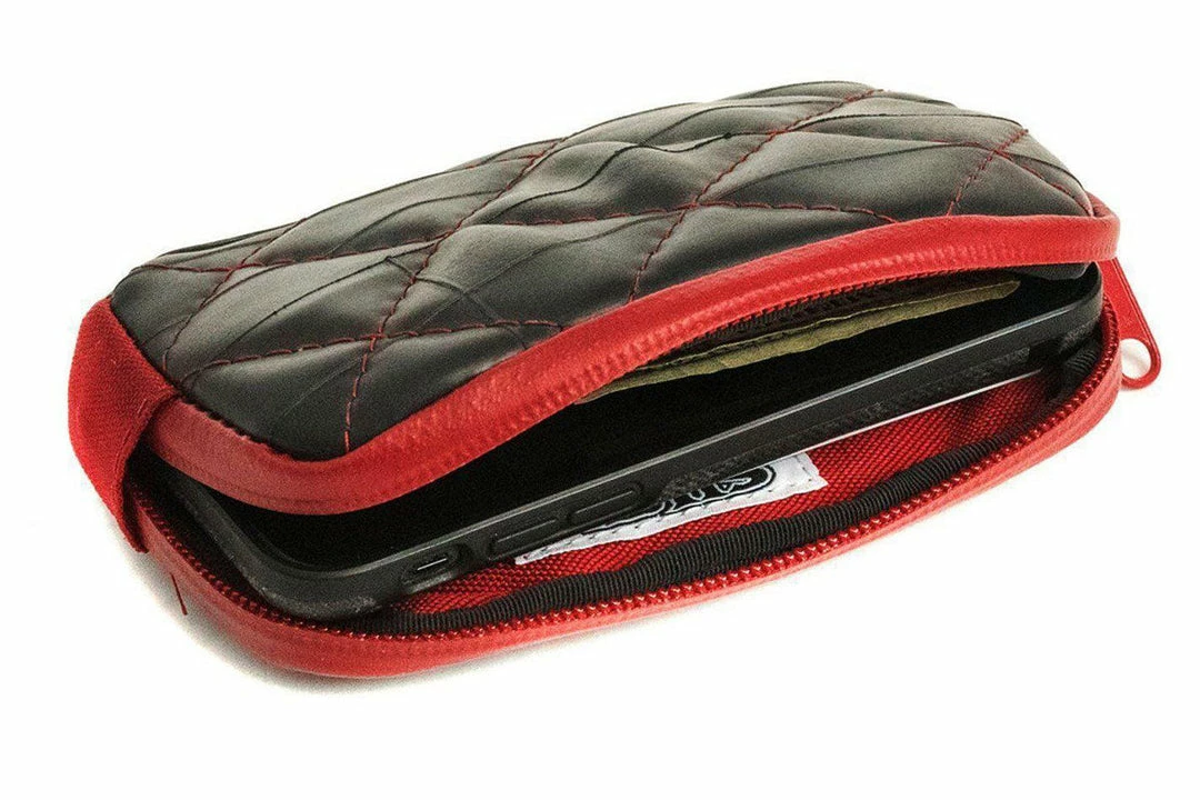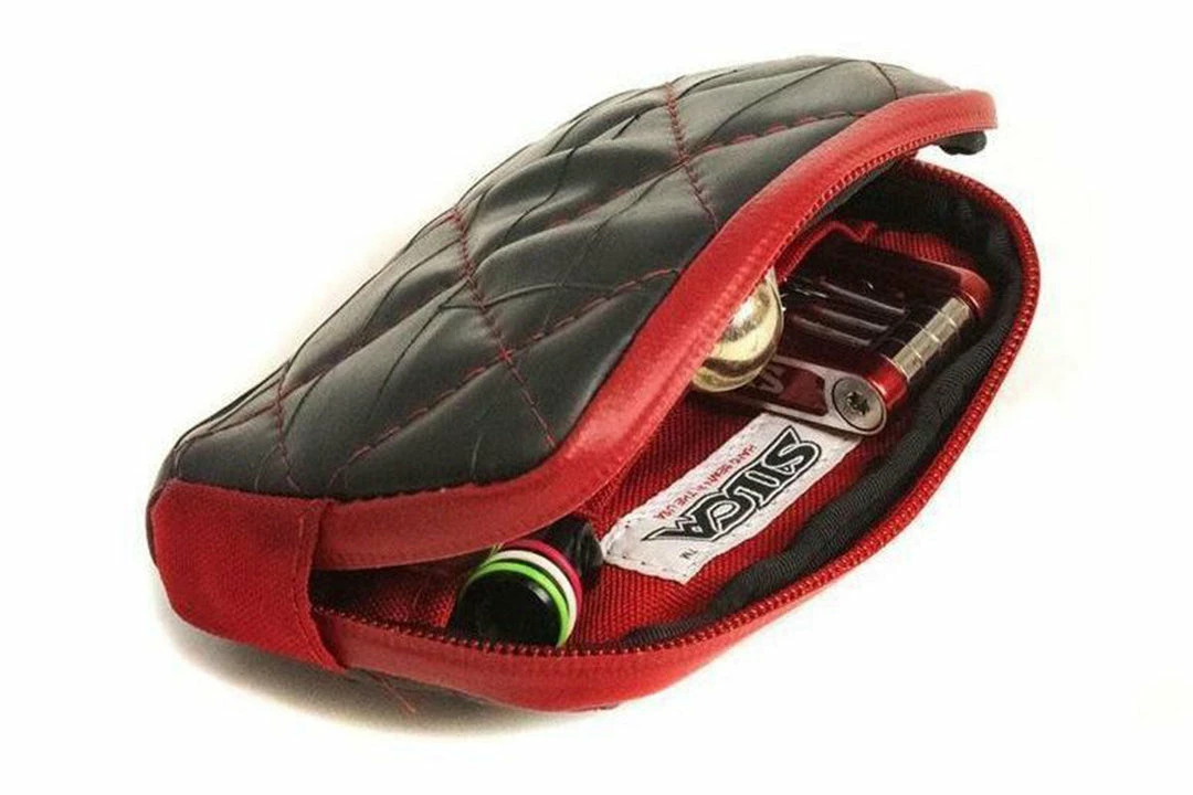 The Silca Borsa Minimo jersey-pocket pack is a simple yet stylish limited-edition storage solution for your everyday riding essentials. Β The Minimo has been designed to be a smaller, more compact version Silcaβs popular Borsa Americano pocket-pack and is constructed of upcycled bicycle inner-tubes. The Borsa Minimo is designed by Silca and sewn by EcoLogic featuring padded protective side panels and internal slide pockets to give you plenty of storage options. The Borsa Minimo is perfect for storing your smart phone, multi tool, cash or credit cards, your house key and patch kit.