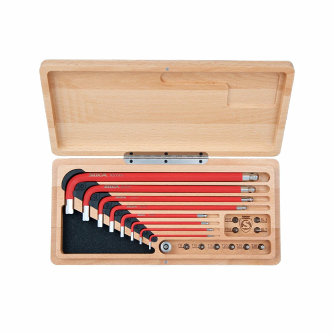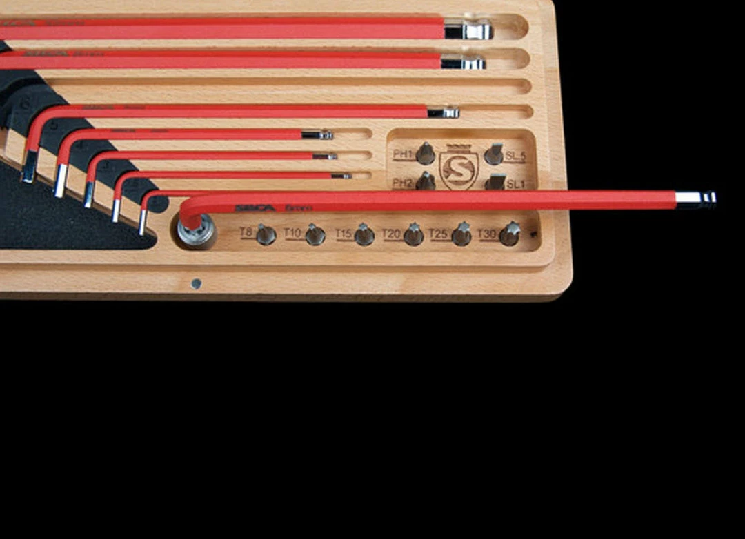 Their HX-One kit uses the finest S-2 tool steel, a shock-resistant material refined by Swiss and German toolmakers for the optimal balance of strength, hardness, shock resistance and dimensional control. Each allen key is then coated with thin-dense chrome, to provide the hardest, most dimensionally stable finish possible. Finally, each tool is spray-coated with a high-grip polymer finish for maximum control.