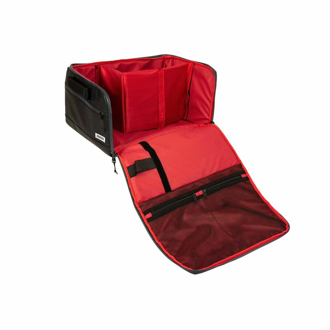 MARATONA Minimo is optimized to make it easier to protect, organize, and travel with all of your cycling gear. With 3 external grab handles and a removable padded shoulder strap, the Minimo can be carried like a briefcase, worn like a messenger bag and even layered with your favourite small backpack. Two padded, soft-lined, anti-static pockets with waterproof zippers protect your valuable electronics, while the internal adjustable dividers allow for customization of storage for your specific gear. And to help keep everything clean, a roll-top shoe bag and vented garment bag are included.