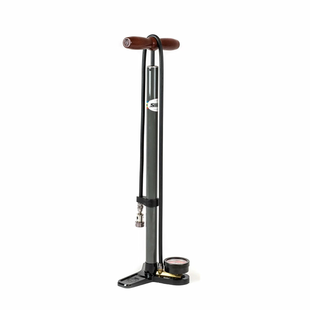 The ‘plus’ in Pista Plus stands for ‘plus stability.’ whereas previous generations of Pista pumps had design features that made them ideal for taking with you, Silca designed Pista Plus for those who prefer to leave the pump at home, in the shop, at the velodrome, etc. A first for the Pista product line, Pista plus features a three-footed aluminium base and an enlarged lathe-turned ash handle, which both draw inspiration from the ergonomics and superior stability of the Superpista Ultimate platform.