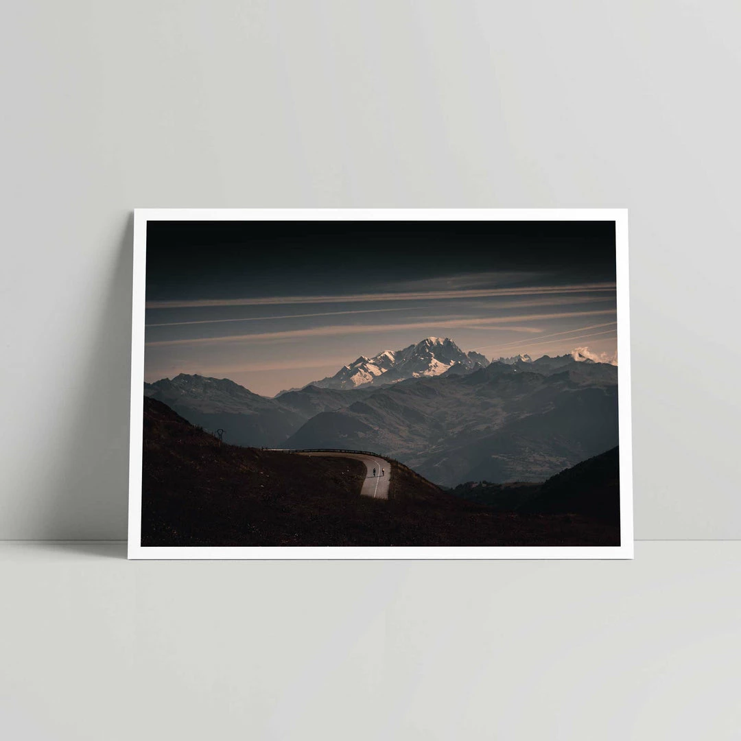 Col du Madeleine, a regular Tour de France feature but never a stage finish is a Col connecting the north to the south. This photograph is of the final switchback as you climb from the north with the imposing Mt Blanc in the background.