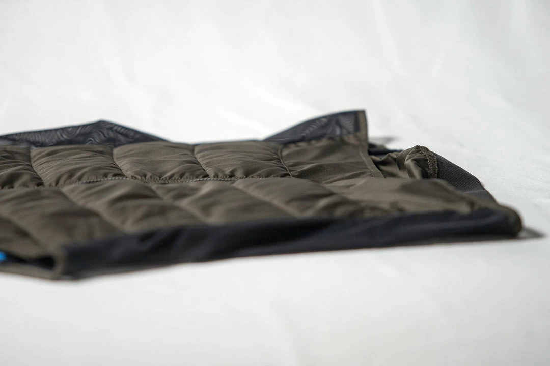 Está diseñado para mantener cálido el torso y la espalda sea cual sea la sensación térmica exterior. También encontramos un cuello más alto para evitar entradas de frío, así como también un relleno de plumas integrado de tal manera que la prenda siga siendo lo suficientemente ligera y confortable para disfrutar de una total libertad de movimiento y portabilidad.