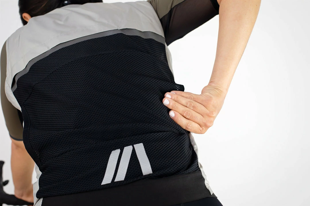 We’ve also incorporated side and rear vents to make the garment more breathable and allow you to ride cool all the time, whatever the ambient temperature is. In addition, the openings in the back allow moisture to escape and allow you to let the air flow better.