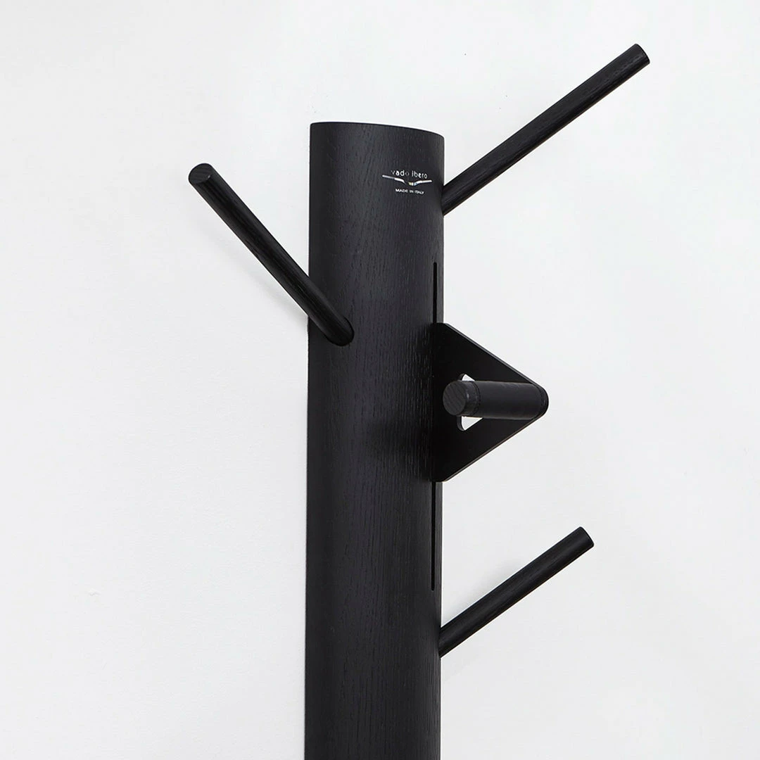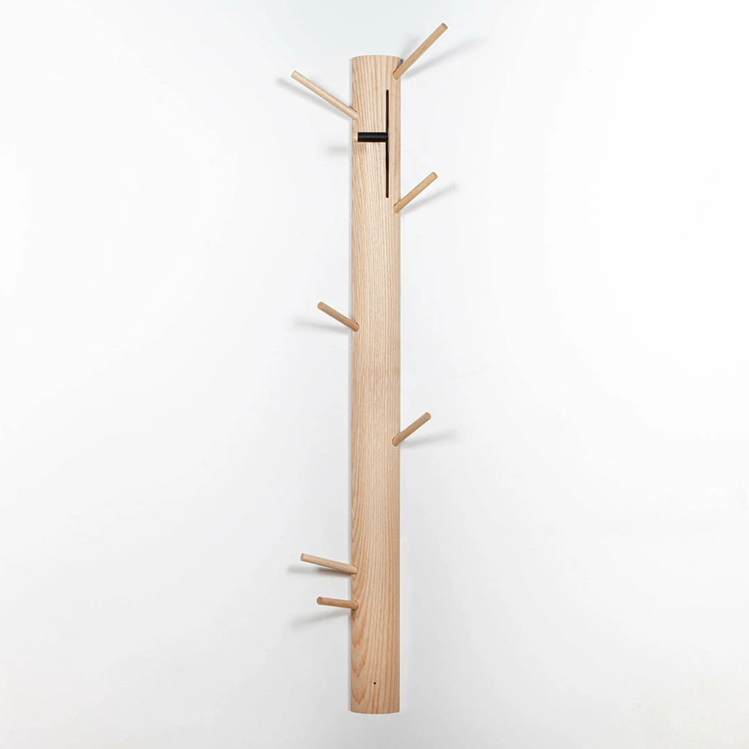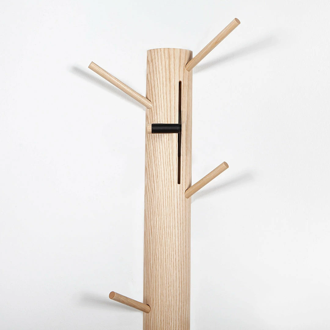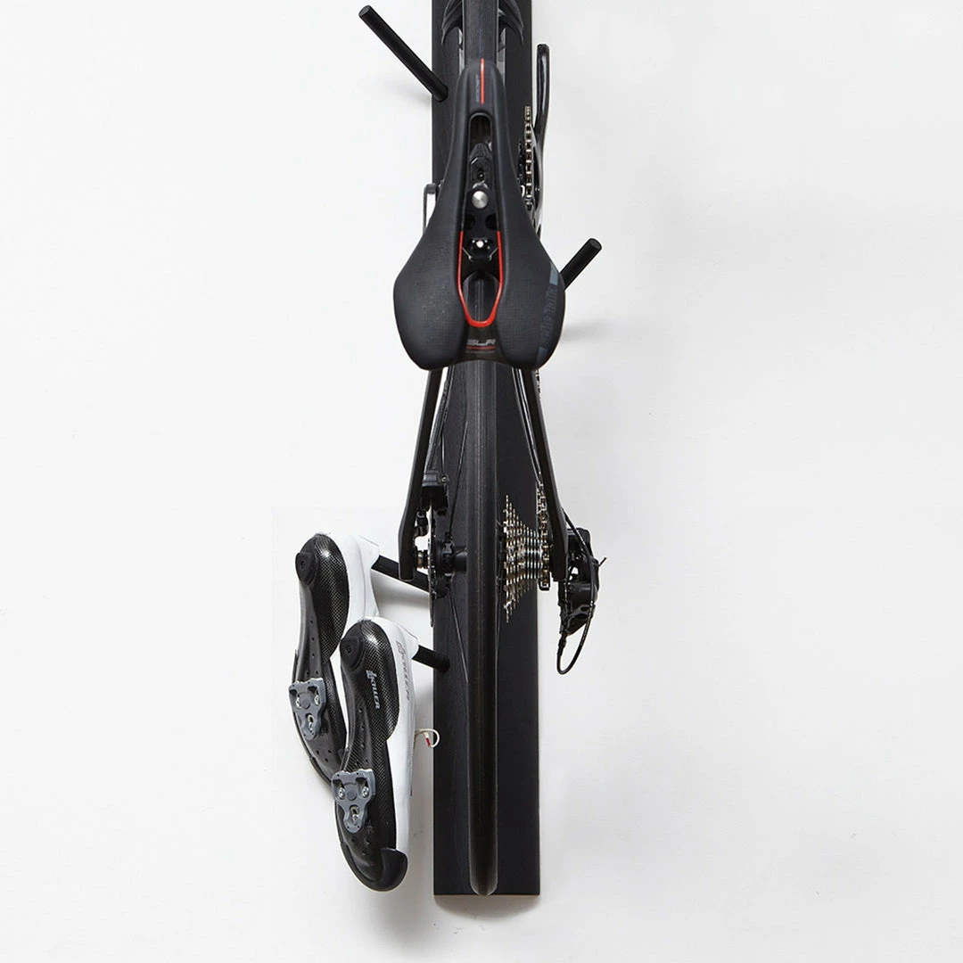 Sleek and simple, it’s an organic design piece with a great aesthetic impact. It recalls the shape of a tree, featuring a rounded solid matte ash wood trunk that hosts the bike, and seven branches on the sides for the gear: each one has been designed to fit and hang all cycling accessories (and more).