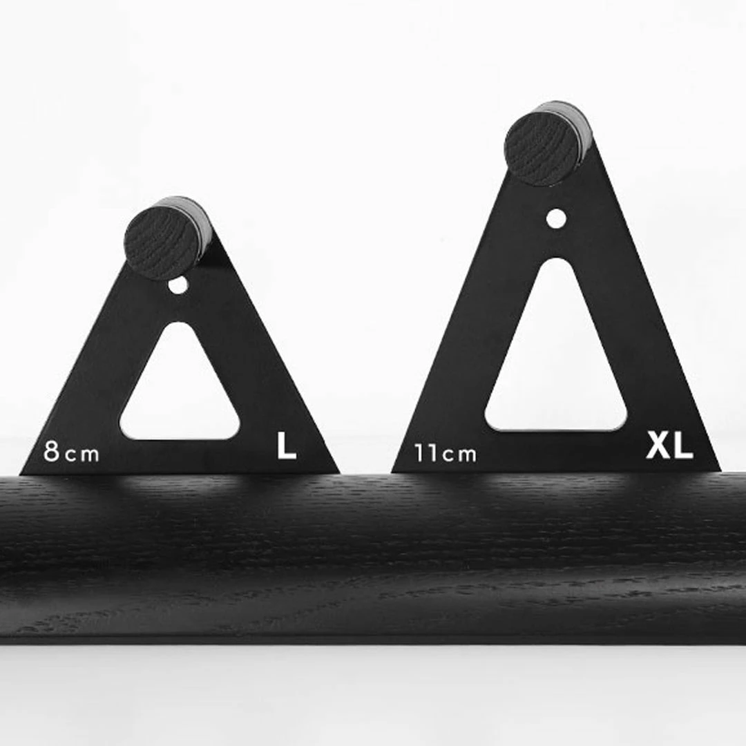 GENUS has been designed to fit most of the wheels, from roadiesβ to MTBβs: the hook is 8 cm deep. But itβs true that today quite a few cyclists, the triathletes among them, choose to ride on higher rimβs wheels. If you are one of them, you can still use our brilliant rack: itβs available the HOOK XL (11 cm deep). The accessory is easy to mount. First, you unscrew the leather-covered pin from the original hook, then you unscrew the support from the back of the trunk, using for both the provided Allen key. After fastening the pin on the HOOK XL, you screw the support into the threaded holes positioned in the back of GENUS, setting it at the convenient height for your bike.