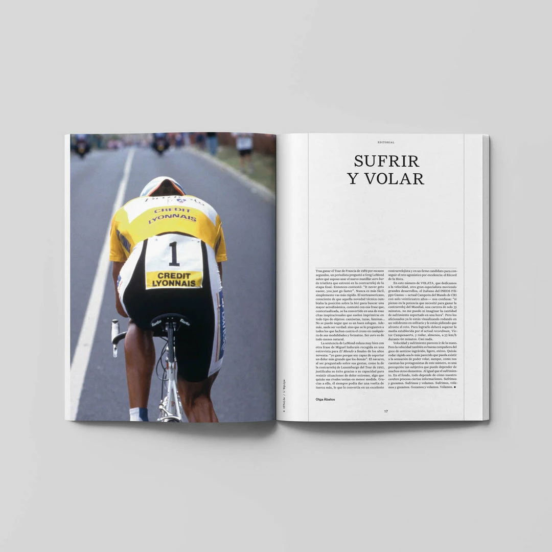 En el numero 27 hemos intentado saber mรกs sobre quรฉ es lo que significa la velocidad y hemosย elaboradoย un nรบmero en el que entrevistamos tanto a especialistas contra el crono como a velocistas como Filippo Ganna, visitamos aย Joan Llaneras y Guillem Timoner en Mallorca, recuperamos la trayectoria de Miquel Poblet y descubrimos el trofeo Ruban Jaune, asรญ como hablamos con el piloto de Moto GP รlex Rins, y somos testigos de una conversaciรณn entre Valteri Bottas (Fรณrmula 1), Cal Crutchlow (Yahama),ย Jamie Chadwick (Serie W) y Mark Cavendish.ย
