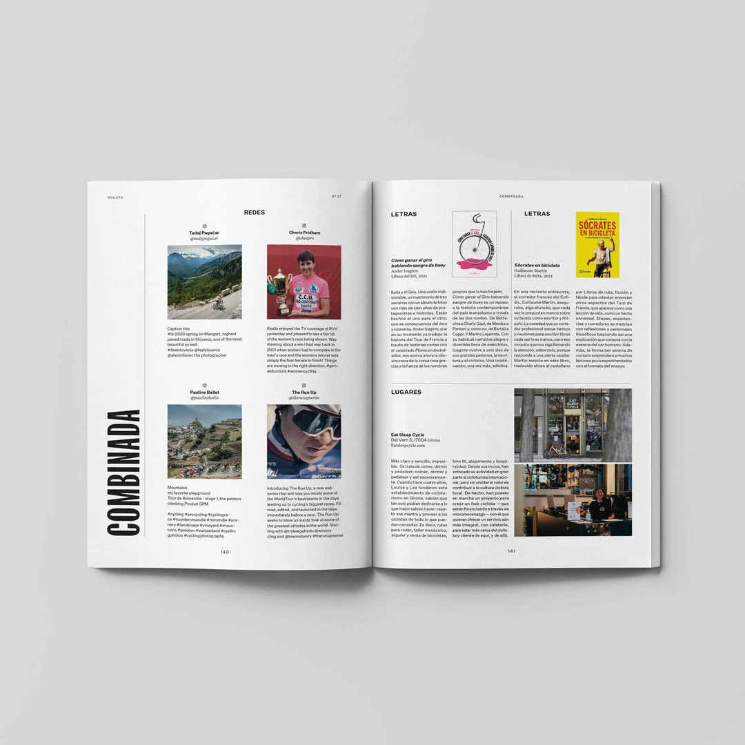 El nรบmero se completa con una ruta inspirada en el circuito de automovilismo de Castellolรญ, una nueva columna de laย periodista y escritora Laura Meseguer, del ciclistaย Luis รngel Matรฉ (Euskaltel Euskadi), y damos la bienvenida a una nueva firma: la del periodista y escritor Ander Izagirre.ย