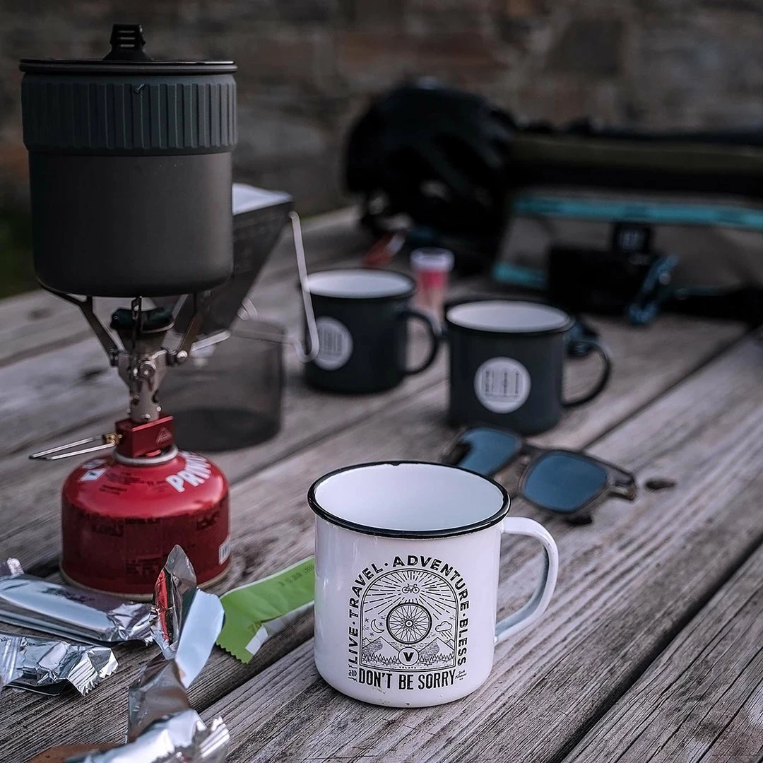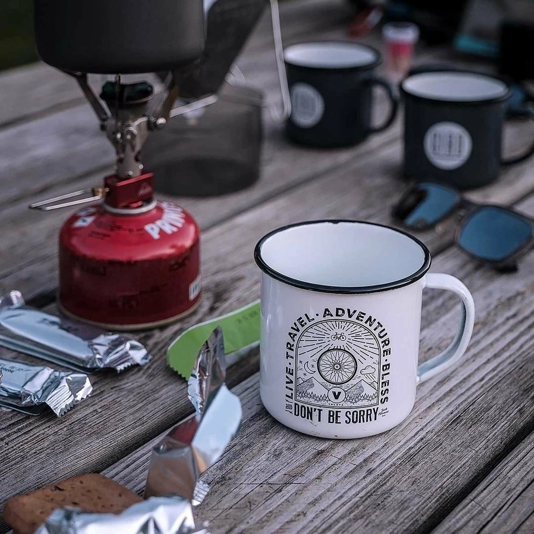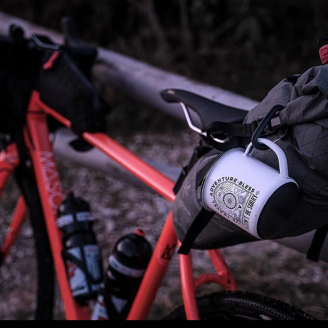 En VOLATA nos gusta acompañaros en cada aventura así que esperemos que esta taza de enamel blanco (acero esmaltado) se convierta en la compañera indispensable para vuestras salidas de larga distancia, bikepacking o cicloturismo de alforjas. Viene decorada con la frase “Live, travel, adventure, bless and don’t be sorry”, del escritor Jack Kerouac. Es resistente y sufrida así que la podéis poner a prueba. Además está fabricada artesanalmente por el taller Retropot, de Cantabria, y con materiales Kilómetro 0.